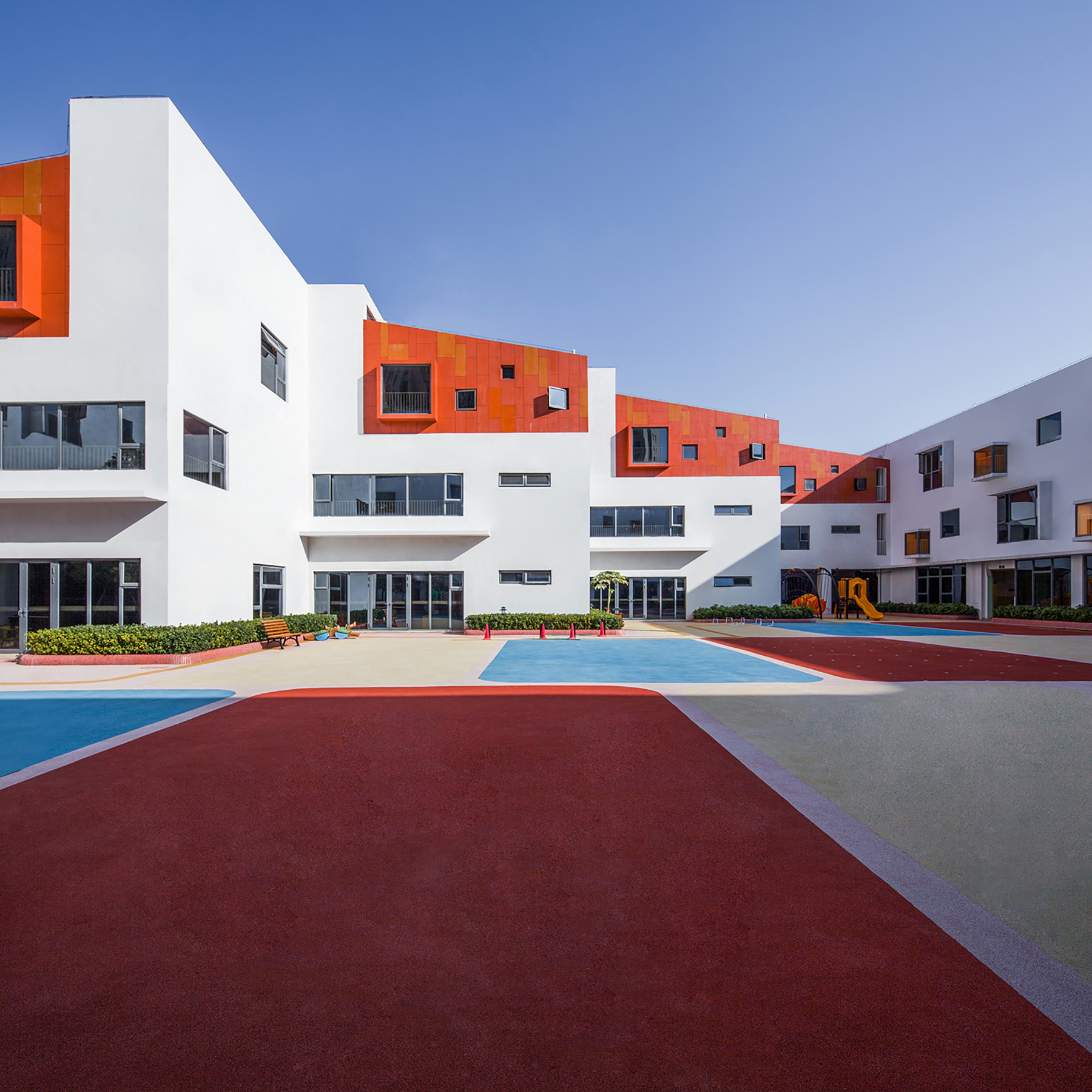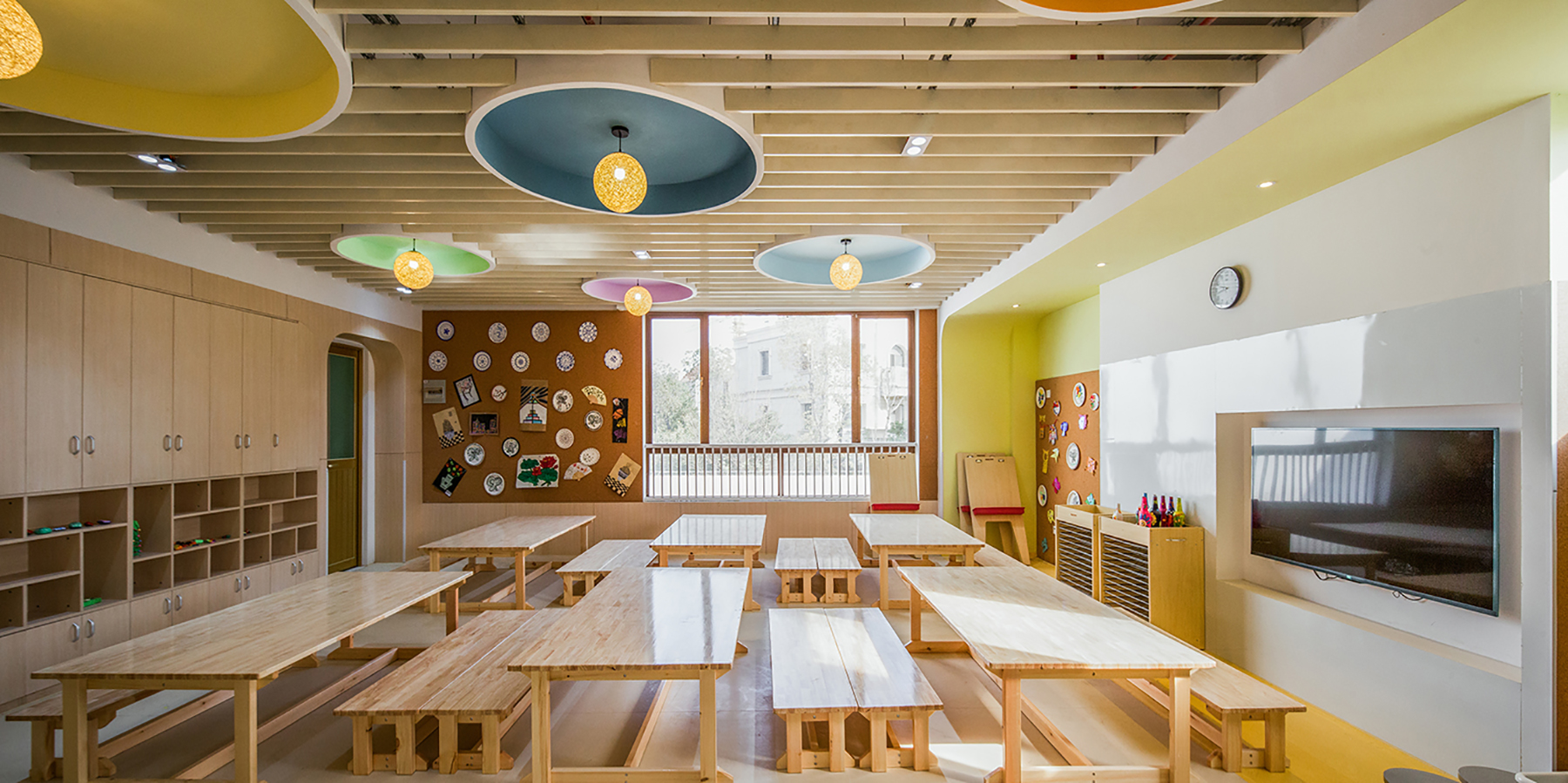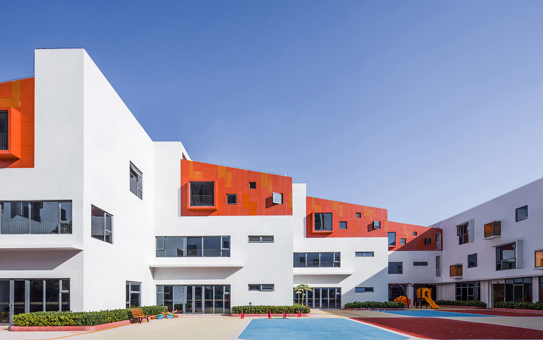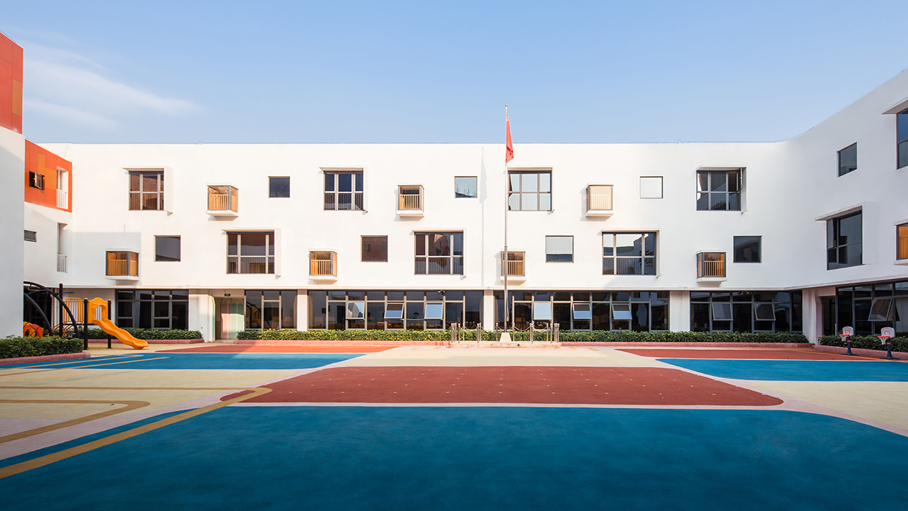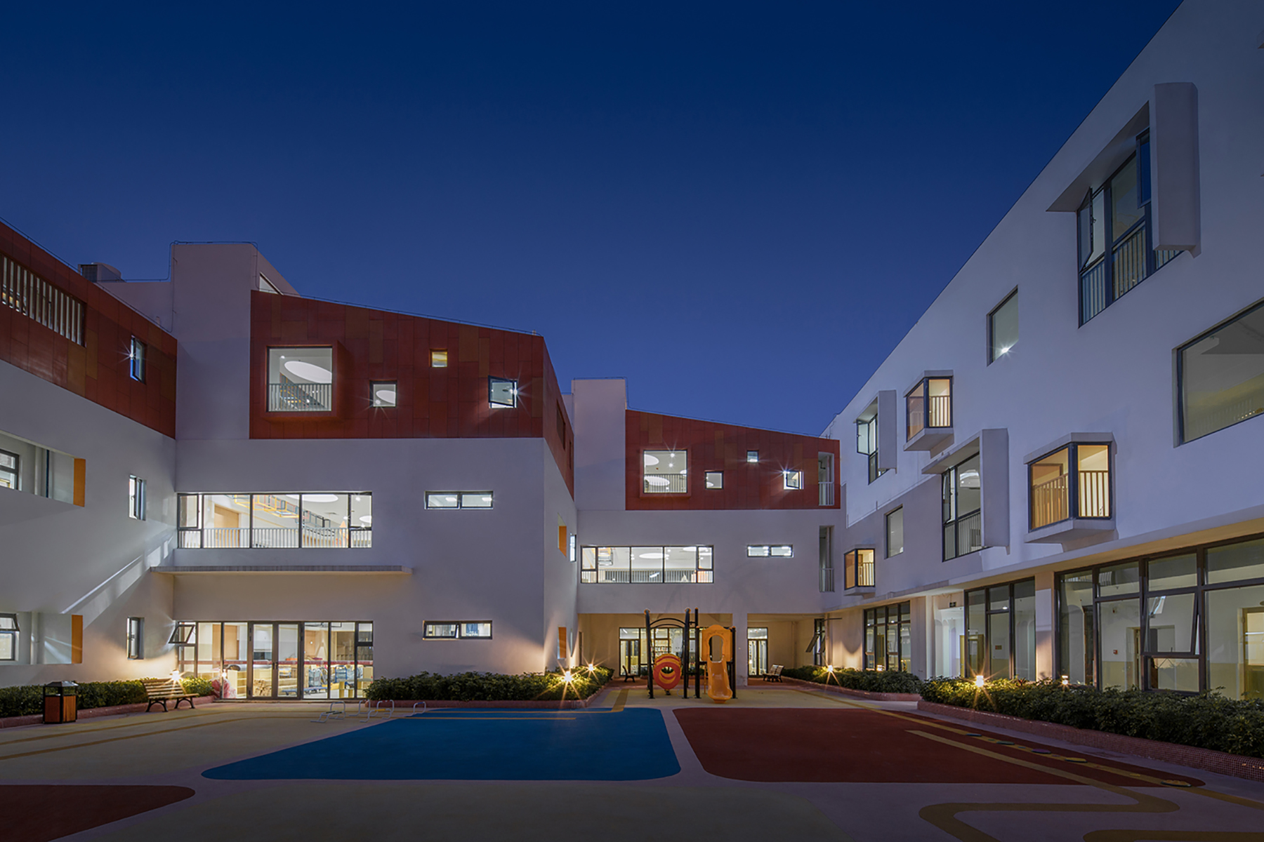 作为商业开发项目的配建幼儿园,在建设成本和设计管理上都有它天然的局限性。设计师力求通过朴素的设计语言,以有趣的空间来组织功能,以明确的体量来塑造光影,在限制性设计条件下用心营造一个“不受限”的儿童乐园。