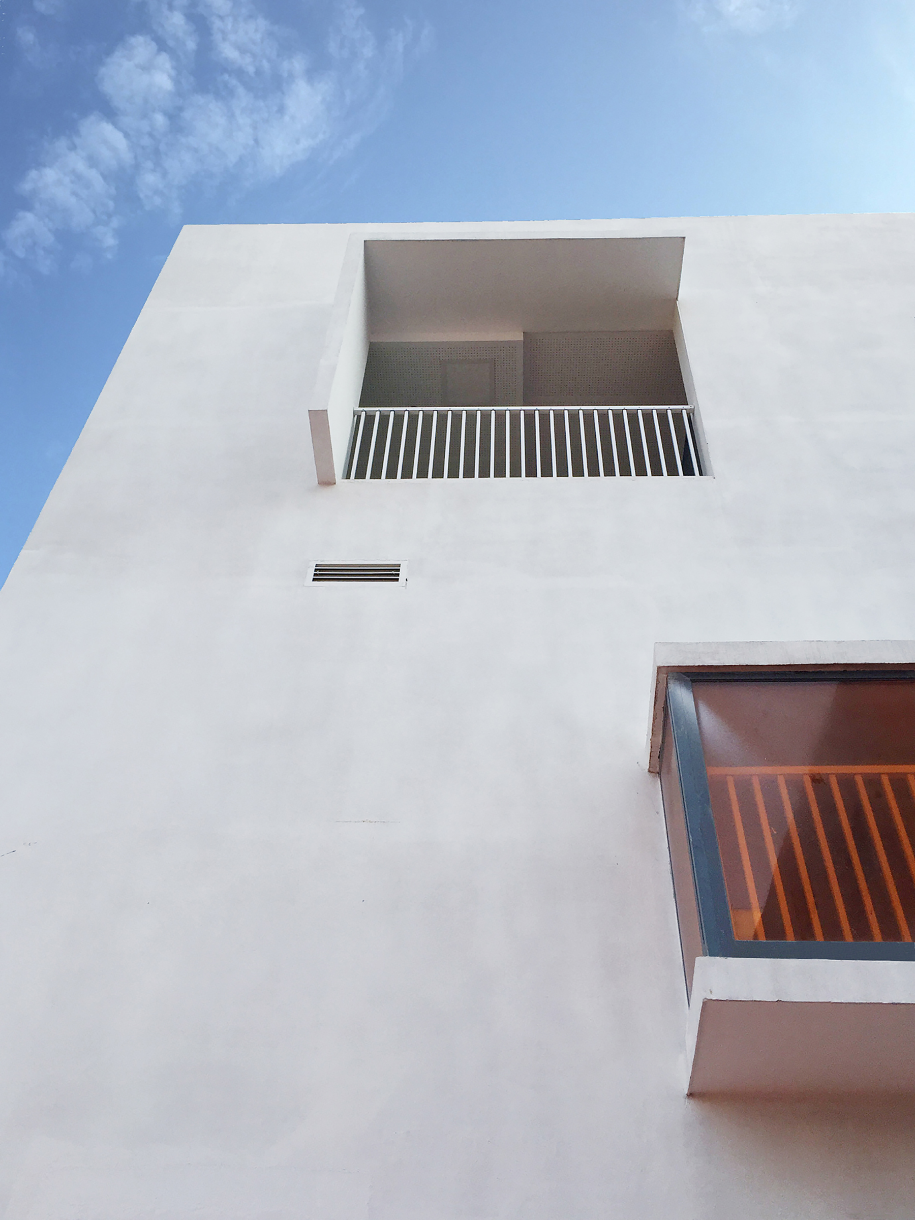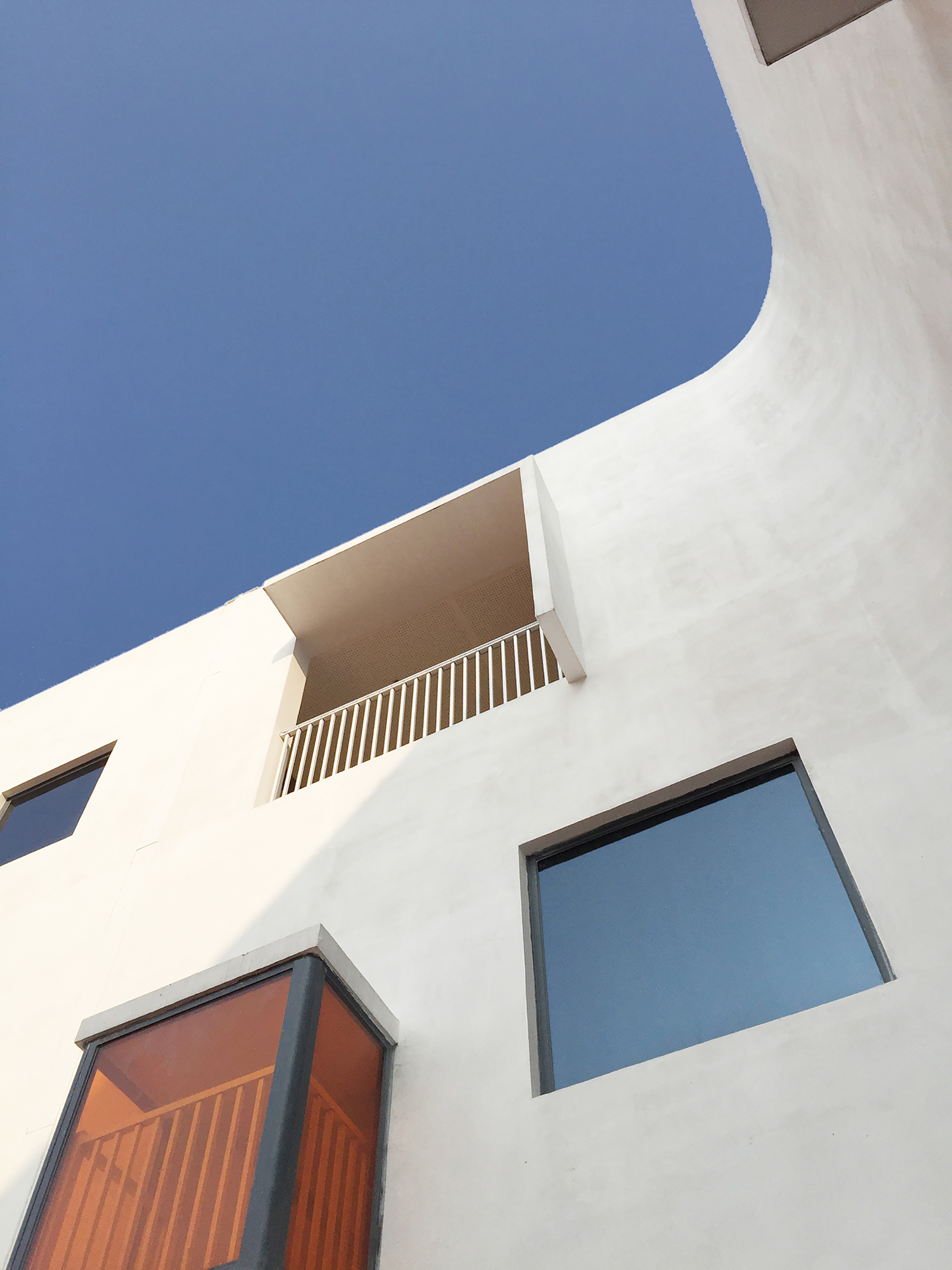 不同尺度的洞口随阳光照射角度的不同也为走廊空间塑造了生动的光影效果,无论从室内还是室外都带给人丰富的视觉体验。