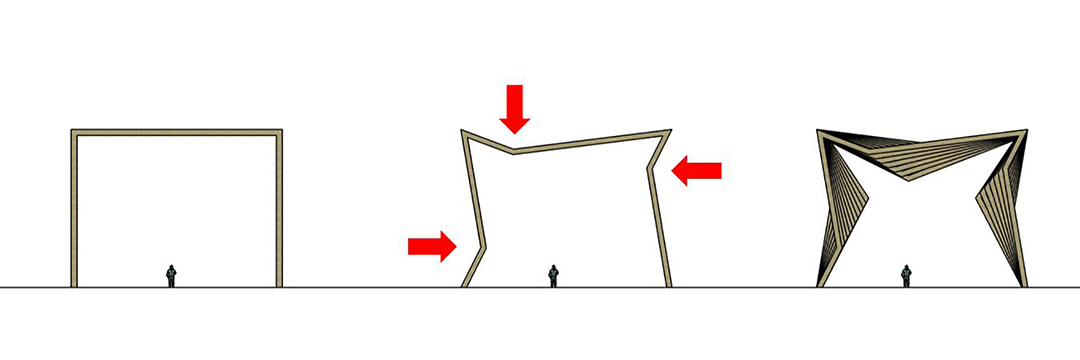 木构件笔直搭接,严整清晰,建构感强。流畅的线条和统一的韵律感使建筑空间极具张力。构件体现出的动态平衡,丰富了建筑语言,将空间变得非常具有戏剧化。