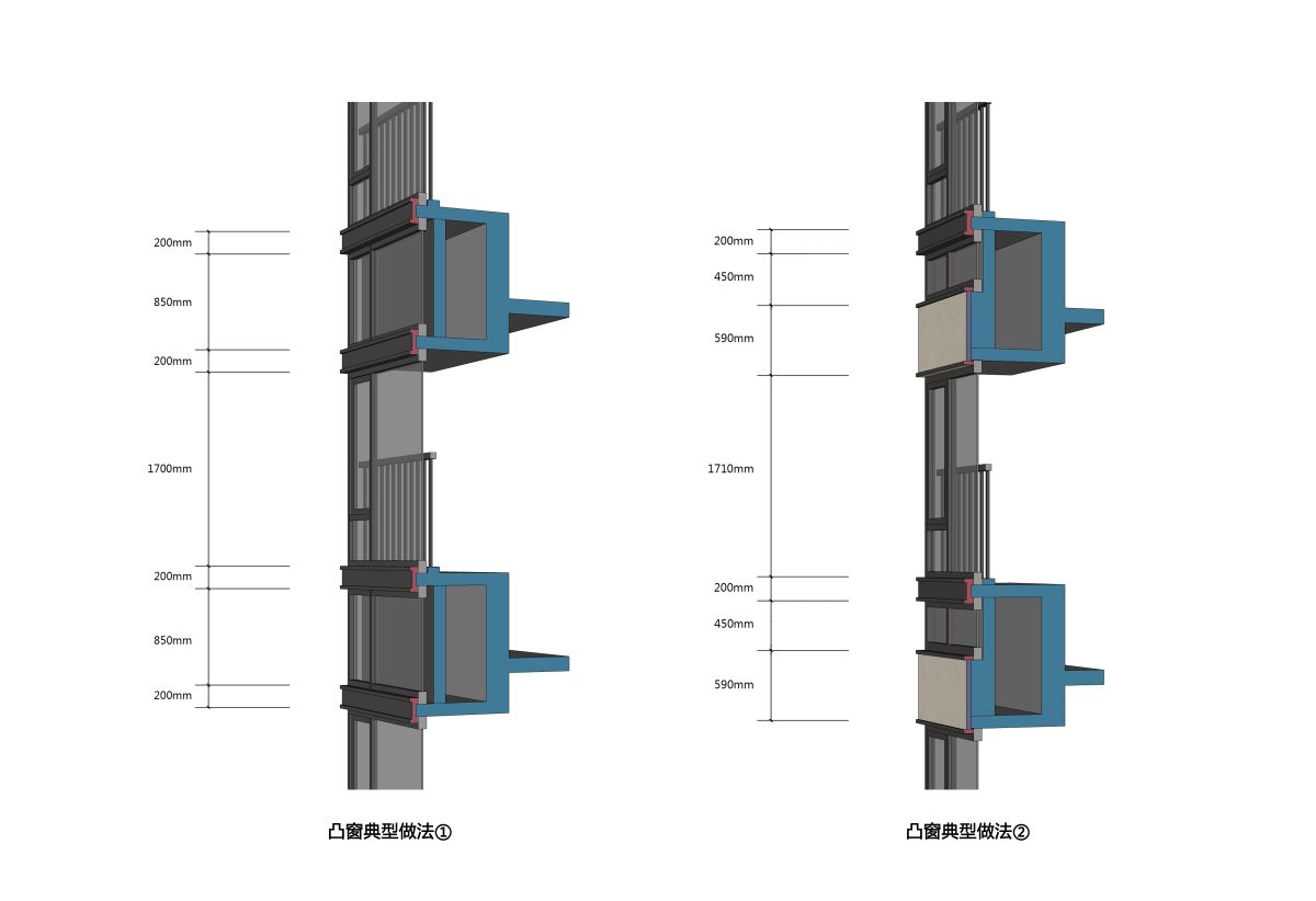 立面设计由于引入了类幕墙窗系统和一体板幕墙系统,对节点的精细化设计和施工均提出了很高的要求,门窗洞口不同材料的收边收口做法尤为精准复杂。设计团队通过对不同尺度线条的对比研究和施工可控性研究,最终确保了的立面完成度的实现。