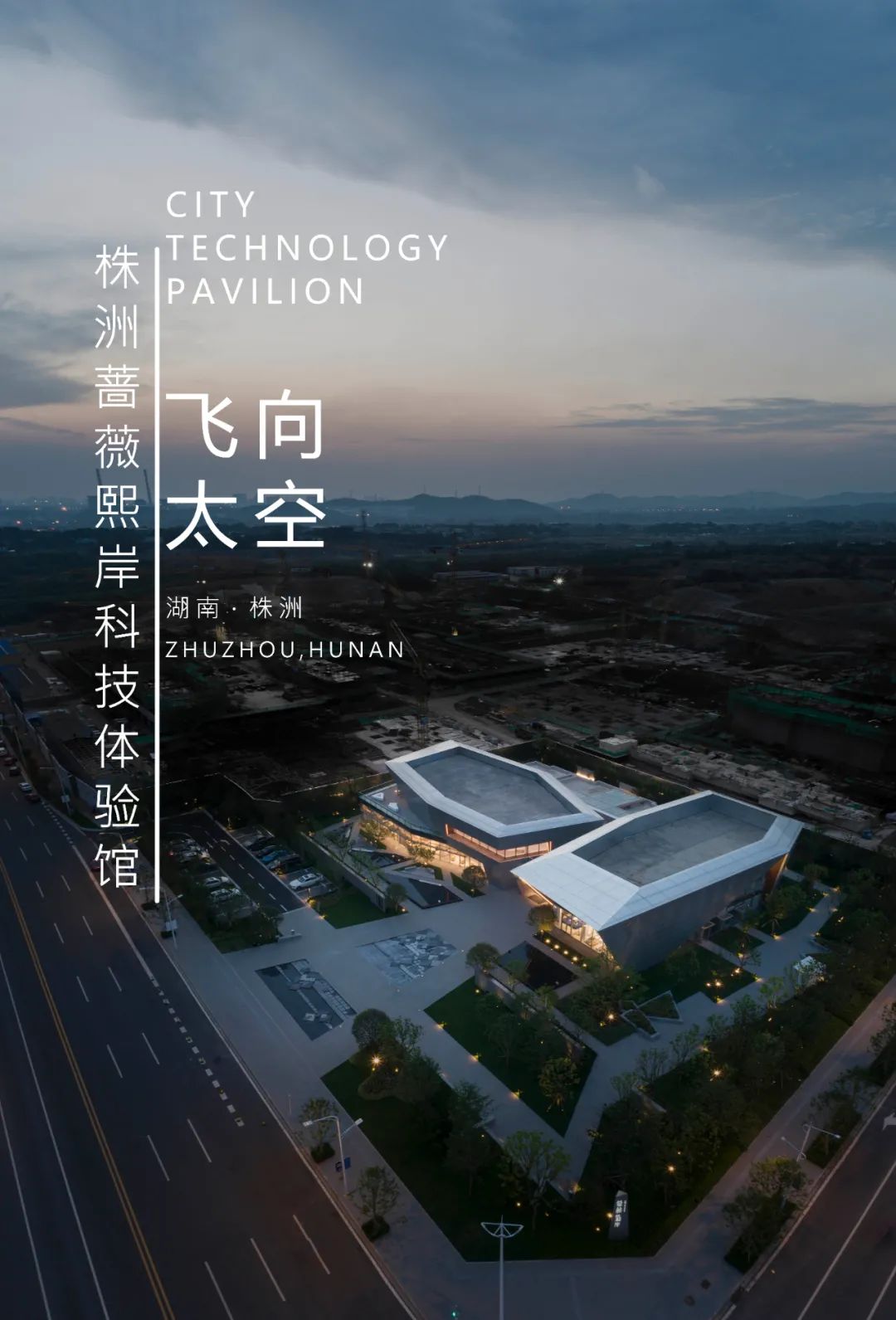 这座标志性的建筑位于湖南省株洲市天元区,南面可远眺万丰湖湿地公园。建筑形态呈现出两块几何变形的空间序列,并于内部空间和外部景观间建立一个精心编排的体验序列。
