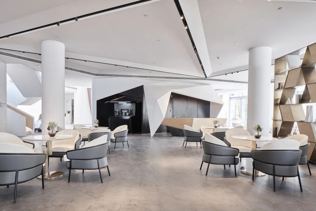 几何转折的玻璃面、不规则的折线旋梯,与建筑整体风格相呼应的同时,带来艺术感和科技感完美结合的室内空间。