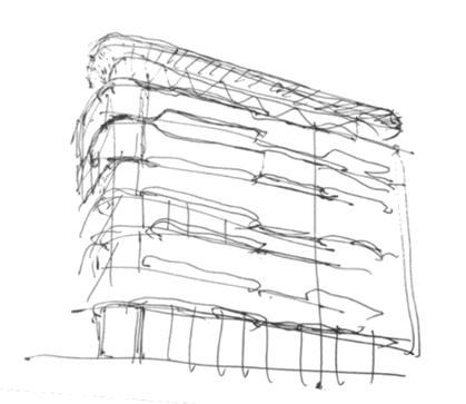 建筑立面考究了山的光影变化,流线型的建筑形态带来一种“矛盾”的美,强调的是建筑与资源和生活的结合。形成了地景与人类活动相融合的奇妙场景,在一系列的事物所形成的氛围中创造出了可被感知的空间与建筑实体。
