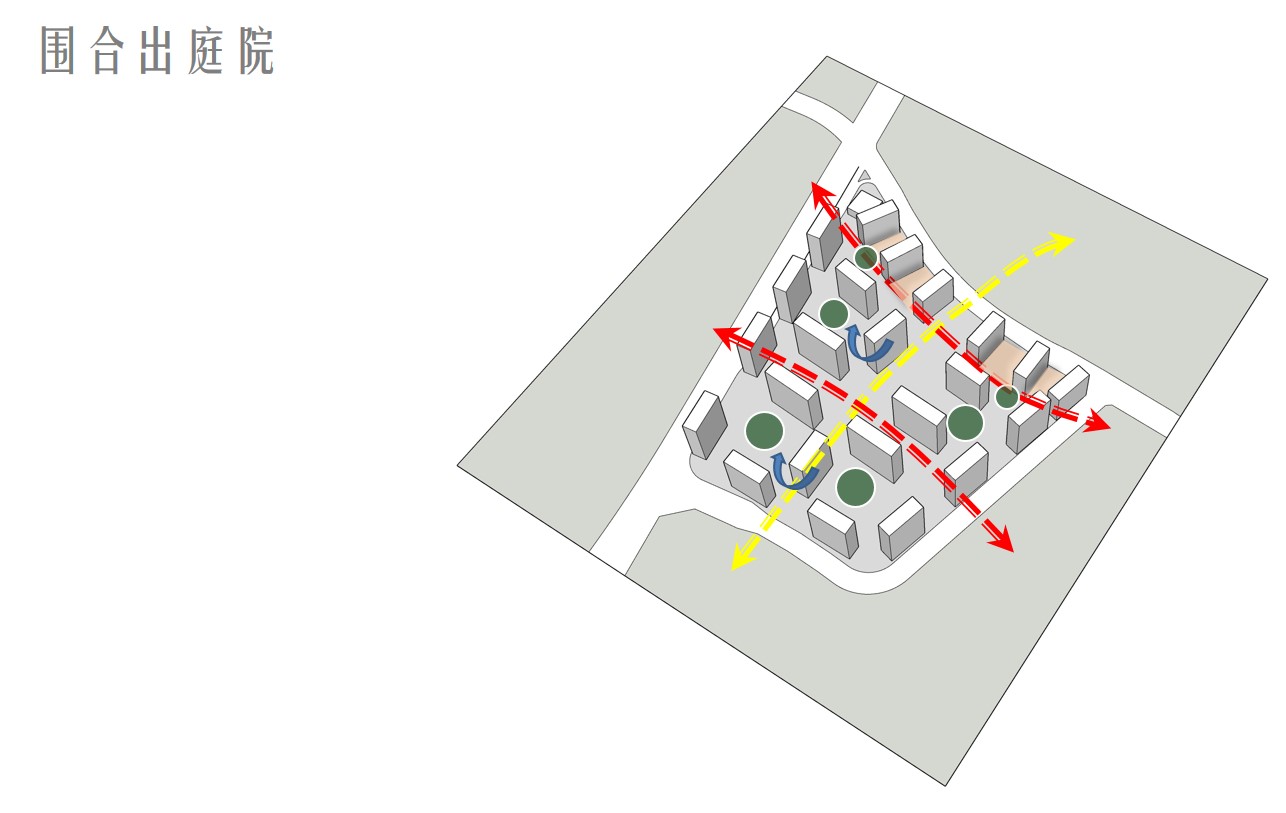 “门-庭-院”的递进布局,渗透古典园林建筑的“隐逸美学”。传承家族门仪,阔朗门庭、雅静园林、入户庭院三重显赫规制,一条归家路,移步异景间。远近亲疏的尺度、公共到私密的关系循序演绎,将道路分割的地块用景观连接,形成山体与景观的自然延伸。
