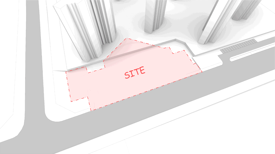 基地拥有近81m的超大尺度沿街展示面,设计以三个体量互相叠合的方式形成建筑主体,通过拉长城市界面来增强对区域的控制力。以强化归家大门为出发点,建筑形体简洁,以L型入口门厅体量作为刻画重点。