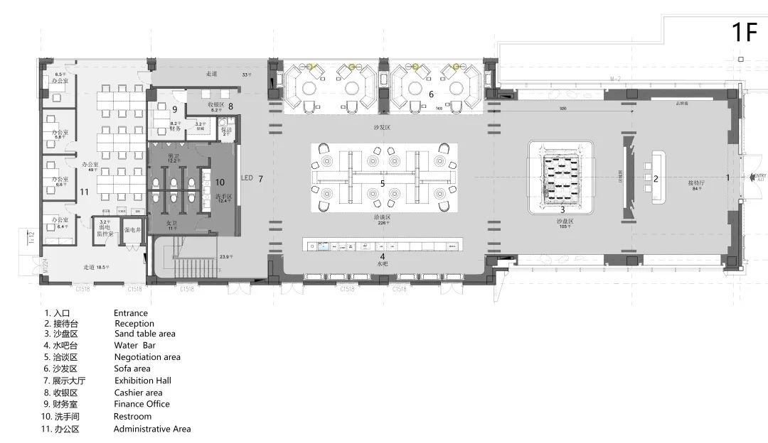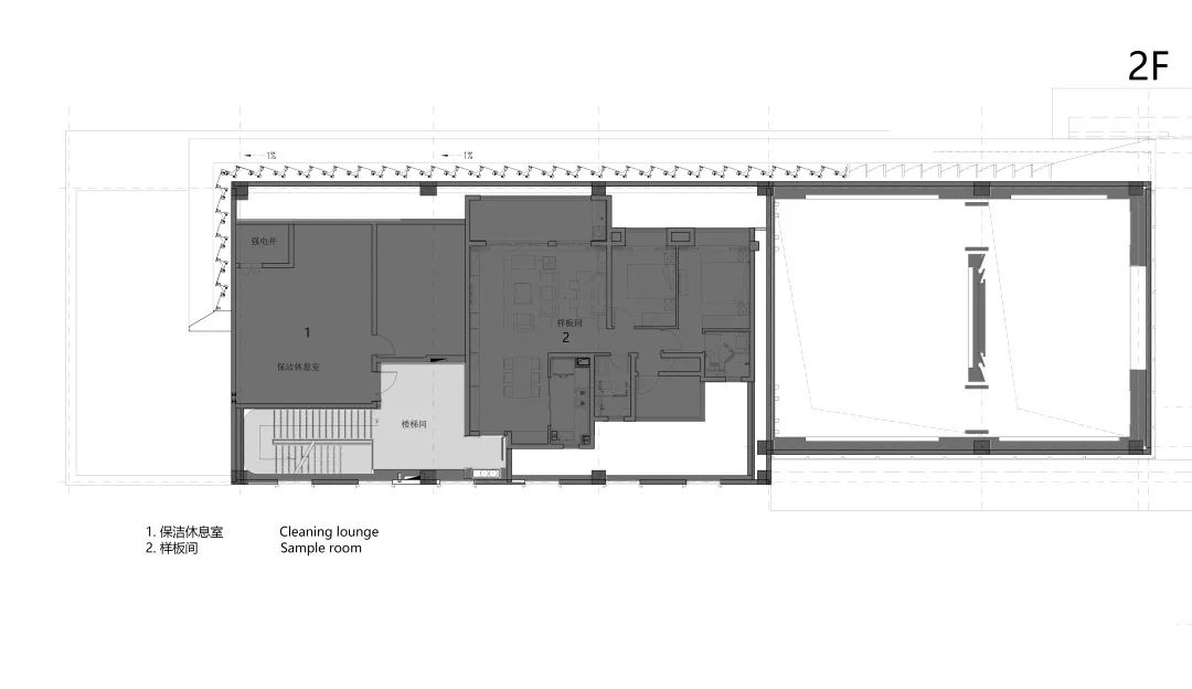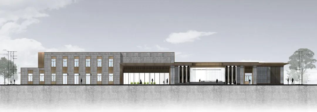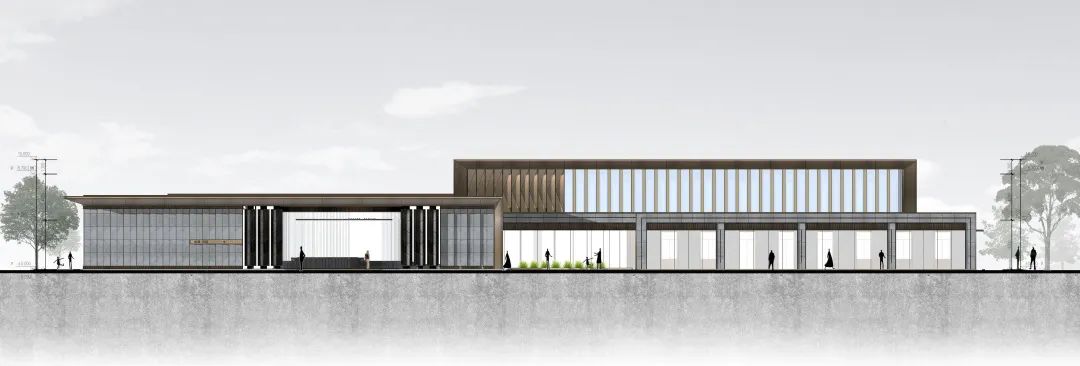 我们期望在这样一个较长的城市界面塑造视觉亮点,作为项目于城市的亮相。建筑一层入口大门与二层反向L造型形成如同“飞鸟展翅”形成起飞之势,给人留下了深刻的记忆点。