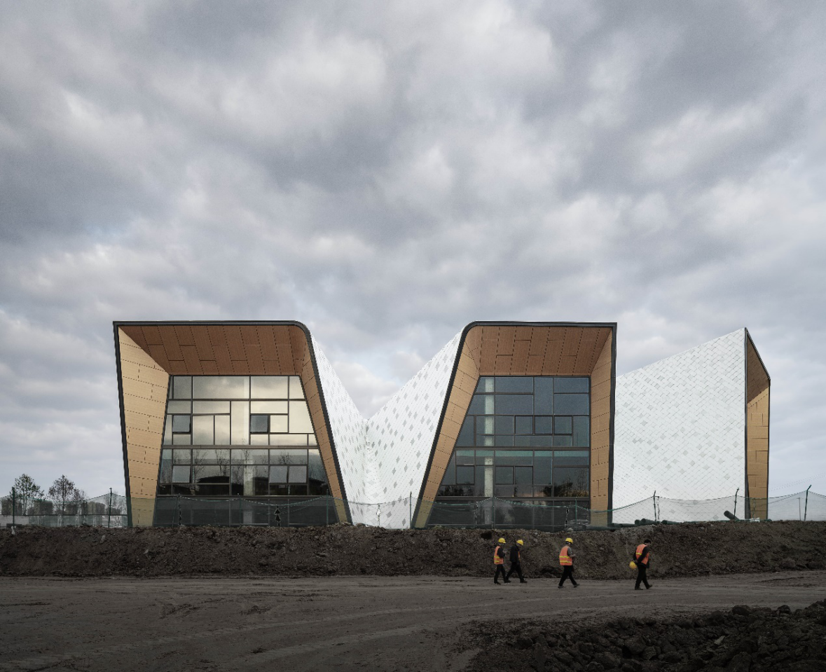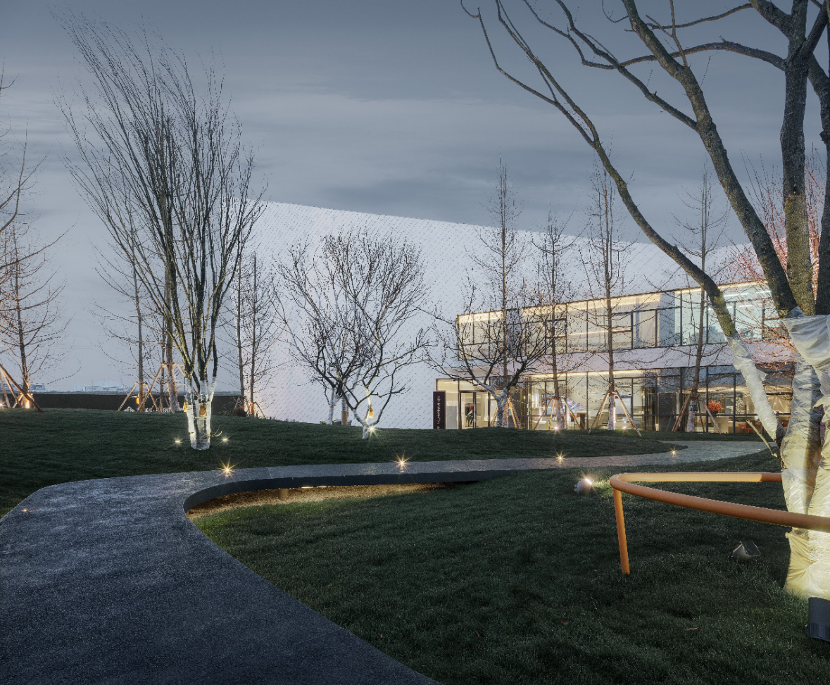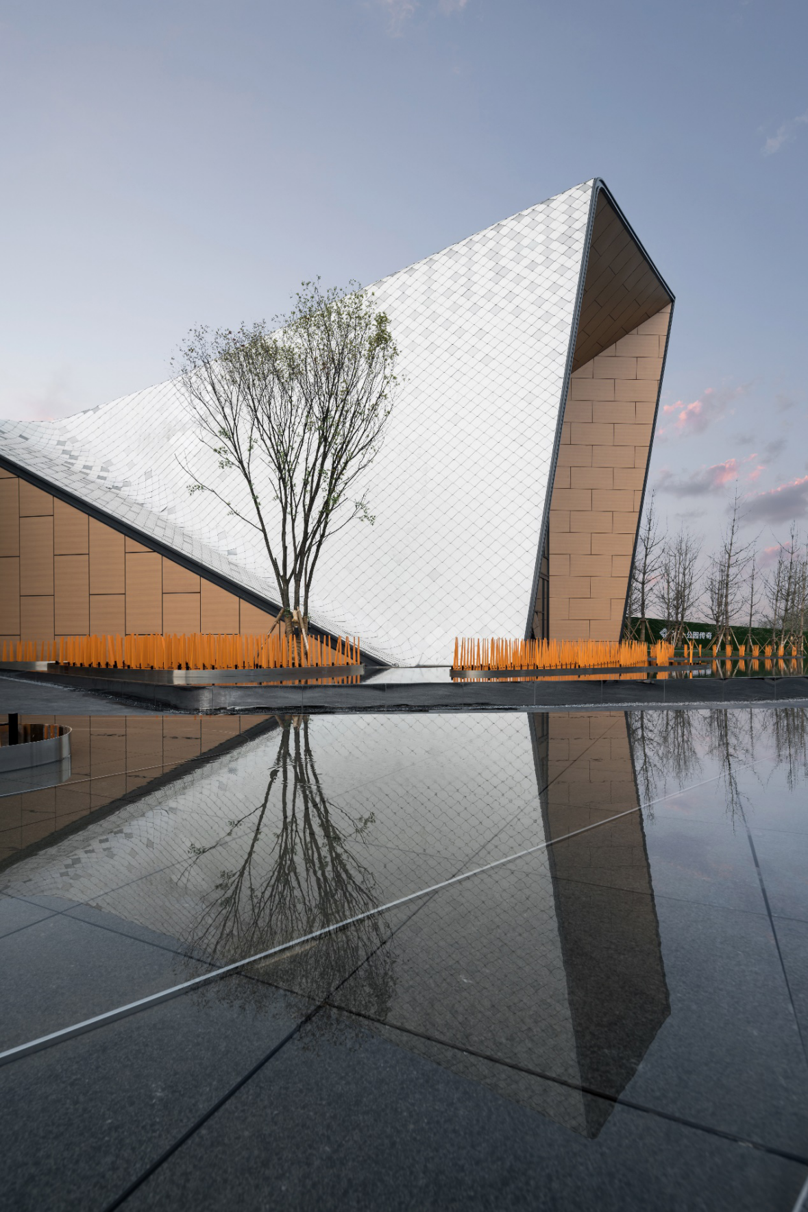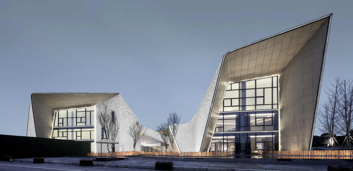 地块东西北三向均被城市景观带包裹,而北向的百米绿化带更是成为城市重要景观轴。建筑形体契合异形场地,将景观引入建筑,以建筑呼应景观。儿童通过与自然的接触可以得到各种体验的同时,建筑物本身亦可作为环境教育的教材被灵活使用。