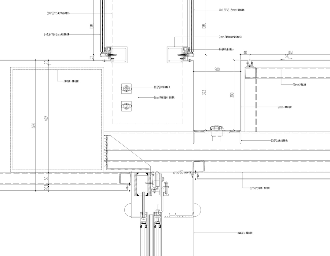 对于空间和时间的截取,希望营造出完整的视觉体验,因此对于每一个节点的把控也到位精准。立面玻璃幕墙总长达80米,幕墙高度为10.2米,每块玻璃均是5.1米。如此大面积的玻璃幕墙已然考验施工工艺。彩釉玻璃的多次打样,及钢柱位置和重新打造桩基的退让,以达到与原建筑的遮掩重合视觉效果。
