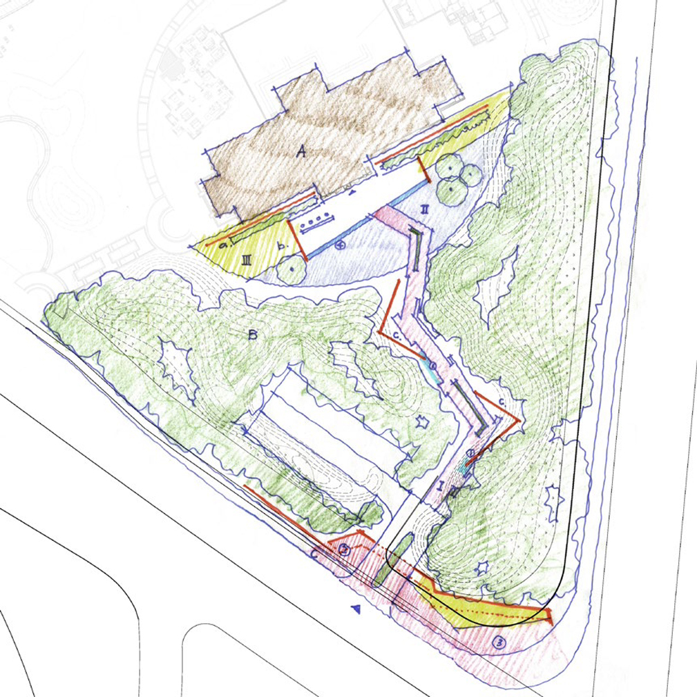 通过多次方案的推敲,老建筑上的场所营造重新通过景观引导进入路径,以宏观的角度看待建筑、景观与人的根本关系,