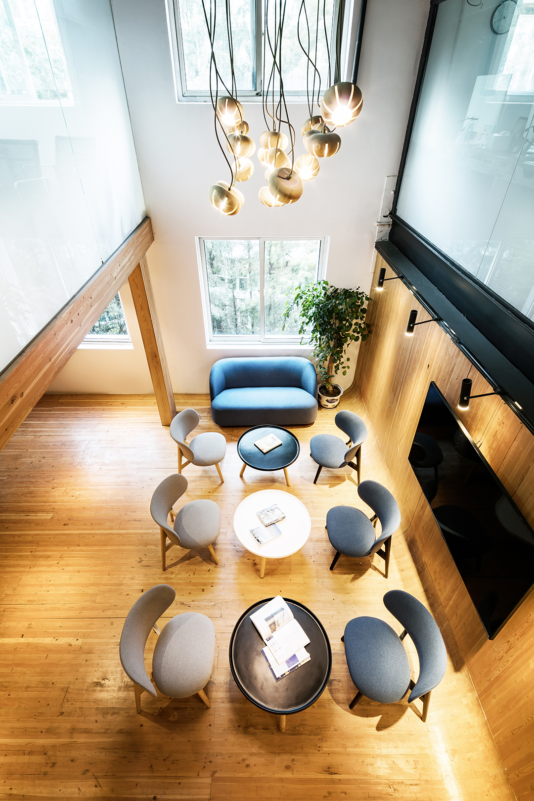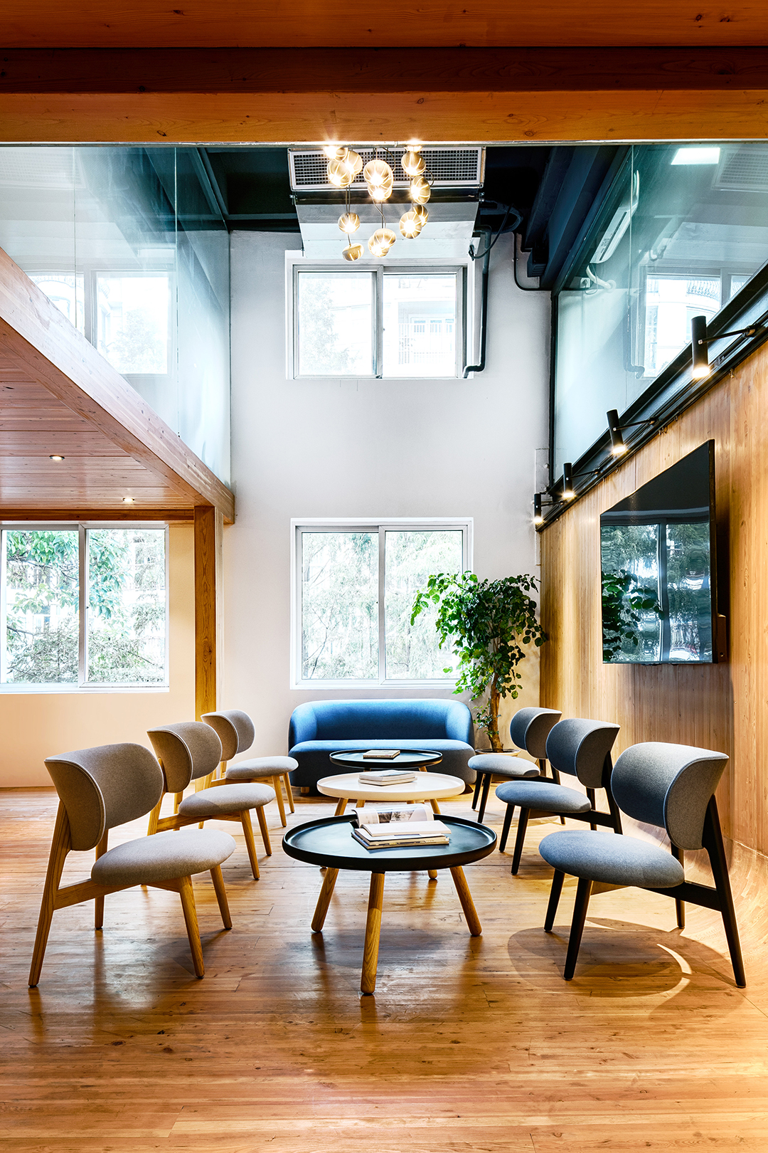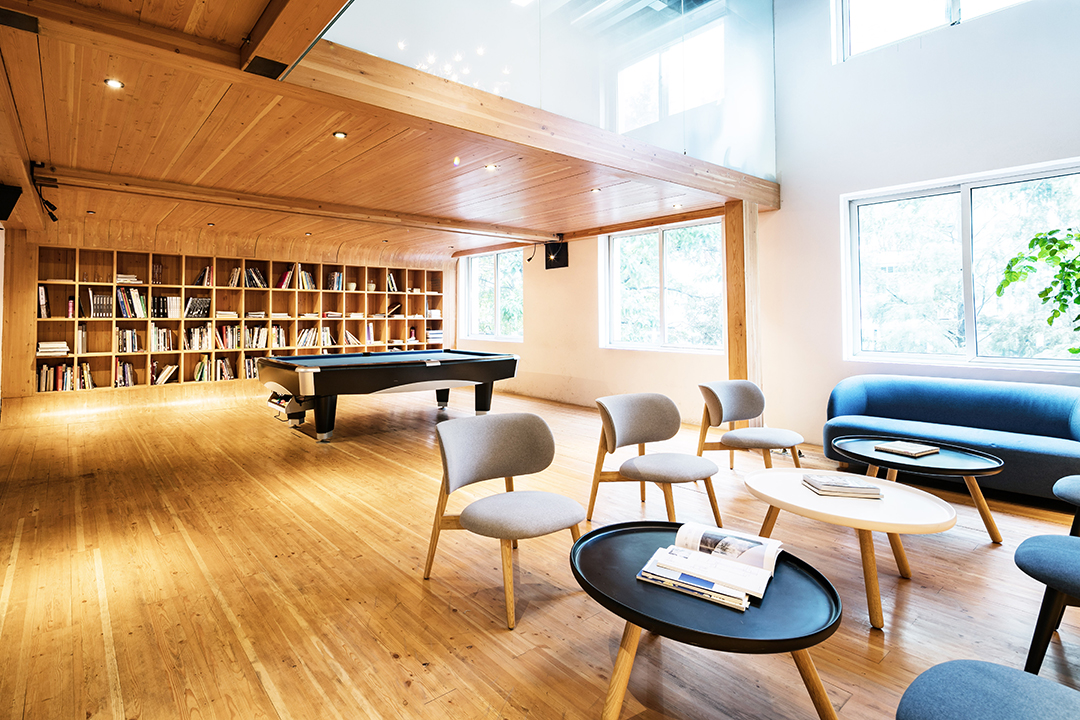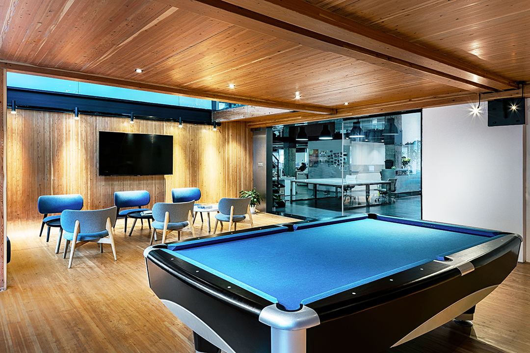 木构空间,给人以舒适温馨的质感,木材特有的自然的味道能缓解员工的压力。木材是唯一可再生的建筑材料,在能耗、温室气体、空气和水污染以及生态资源开采方面,是公认的绿色建筑。员工们可在此休闲小憩,灵活的休息区,给予员工激发灵感和奋斗精神的绝佳环境体验。木结构、装配式、轻建筑等特点无一不是强调快速建造、低环境影响和绿色可持续的设计趋向。