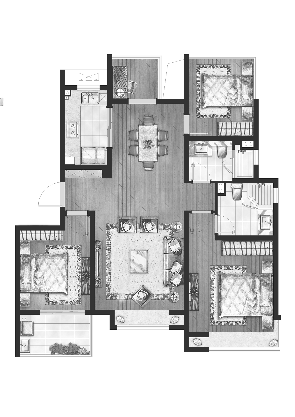 让空间以人性互动,空间功能从有限走向无限。全屋采用十字轴线布局,动静分离,南北通透,采光通风俱佳;南向三开间全明布局,大面宽飘窗赠送,采光充沛,南向风景,可尽收眼底;主卧套房布置,设置全明独立卫生间,私密性高;约4m大面宽客厅,通透落地窗拥揽大景观阳台,视觉效果极佳;入户玄关设置,配以固定收纳,收纳空间最大化利用。南向风景,可尽收眼底。