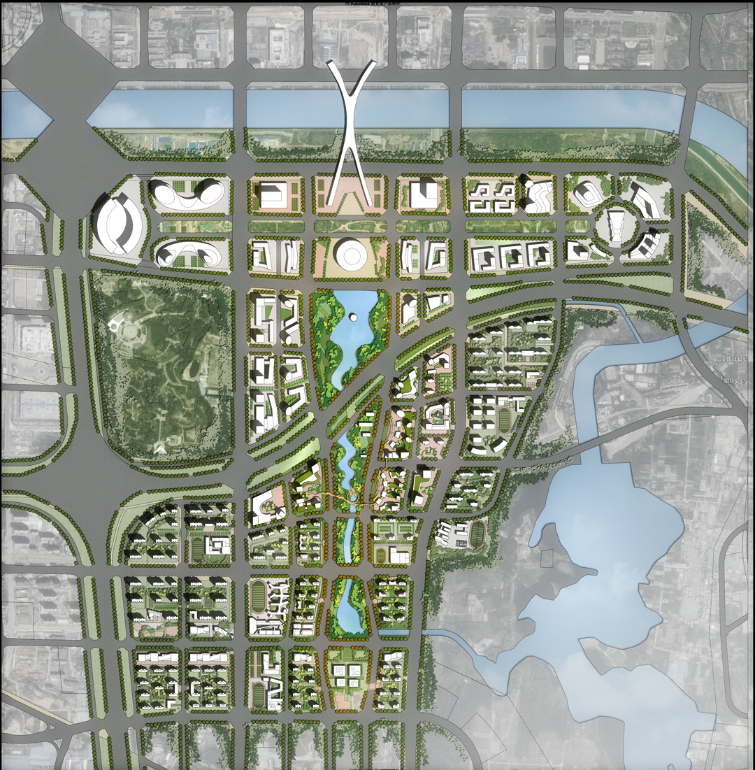 项目所在地位于郑州文化服务中心区南侧,毗邻郑州植物园和湿地公园,规划面积约455亩,致力于打造以多功能综合文化产业园区为主的特色文化商业商务集群,利用项目基地原有的良好景观资源,以九曲莲湖为核心绿源,向两侧商业用地渗透。文创产业园的商业形式与城市北侧的大型文化场馆形成对比,从城市形态建筑体量上形成向南侧生活住区的过度。