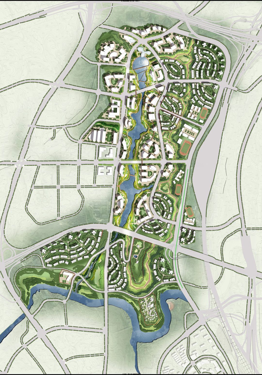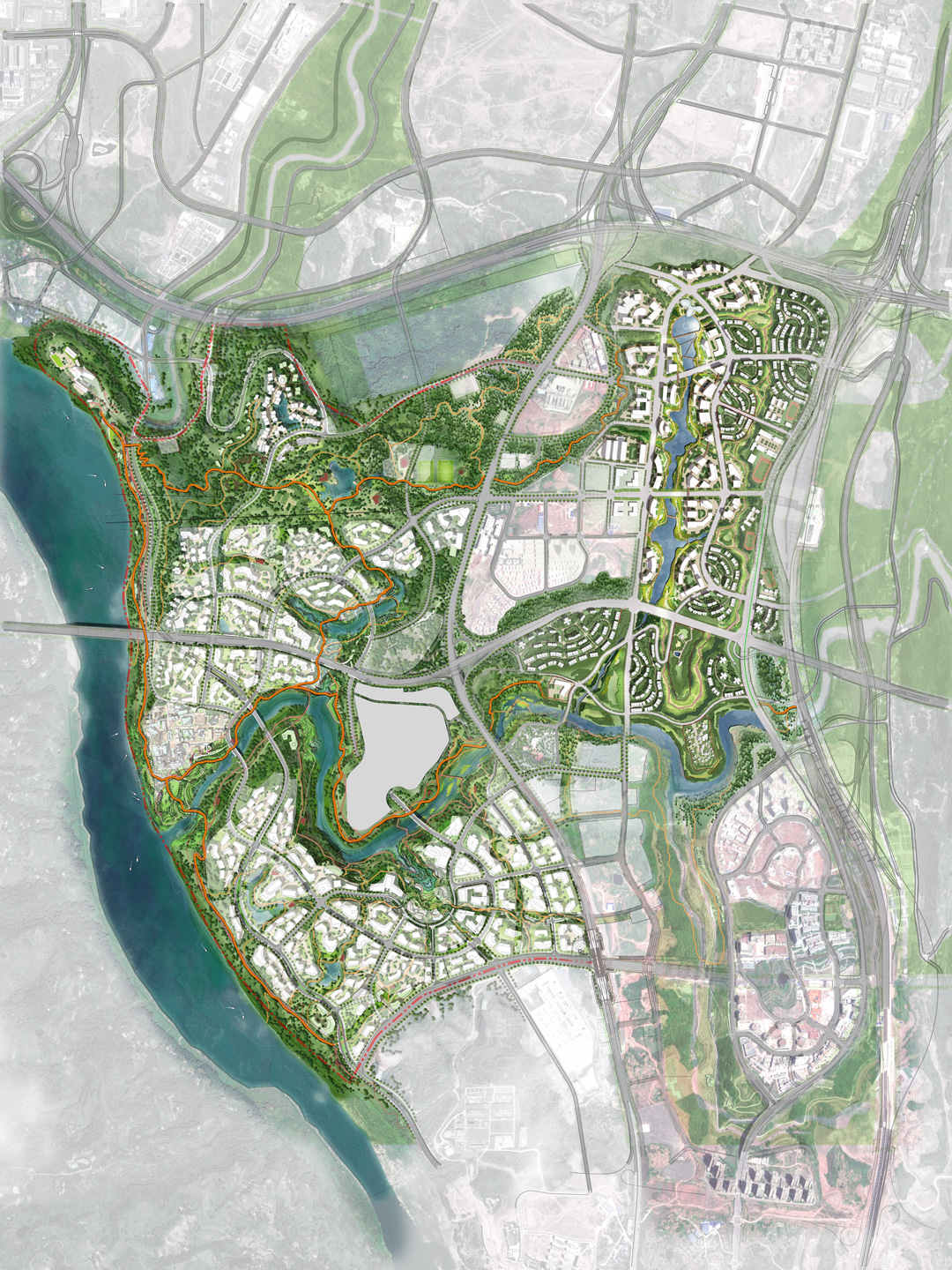 项目所在地位于重庆两江新区,规划面积约4950亩,项目整体规划理念为融于山水,保留显山露水的生态格局,在山水绿谷中生成自然的城市肌理。打造生态型多元复合的医疗产业新城。