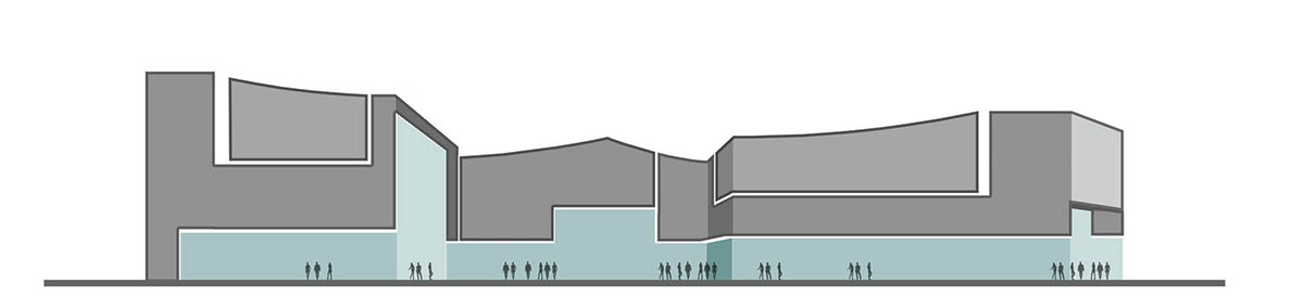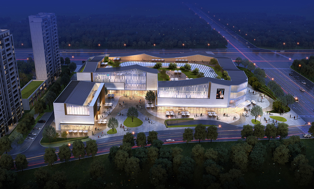 在该案中,设计追求商业形象和城市文脉的统一,以营造一个充满城市精神的活力场所。建筑通过大的虚实对比明确体量间的尺度关系,以首尾相接的弧线屋顶演绎传统苏式建筑文脉,塑造如太湖波浪般起伏的沿街立面形象。