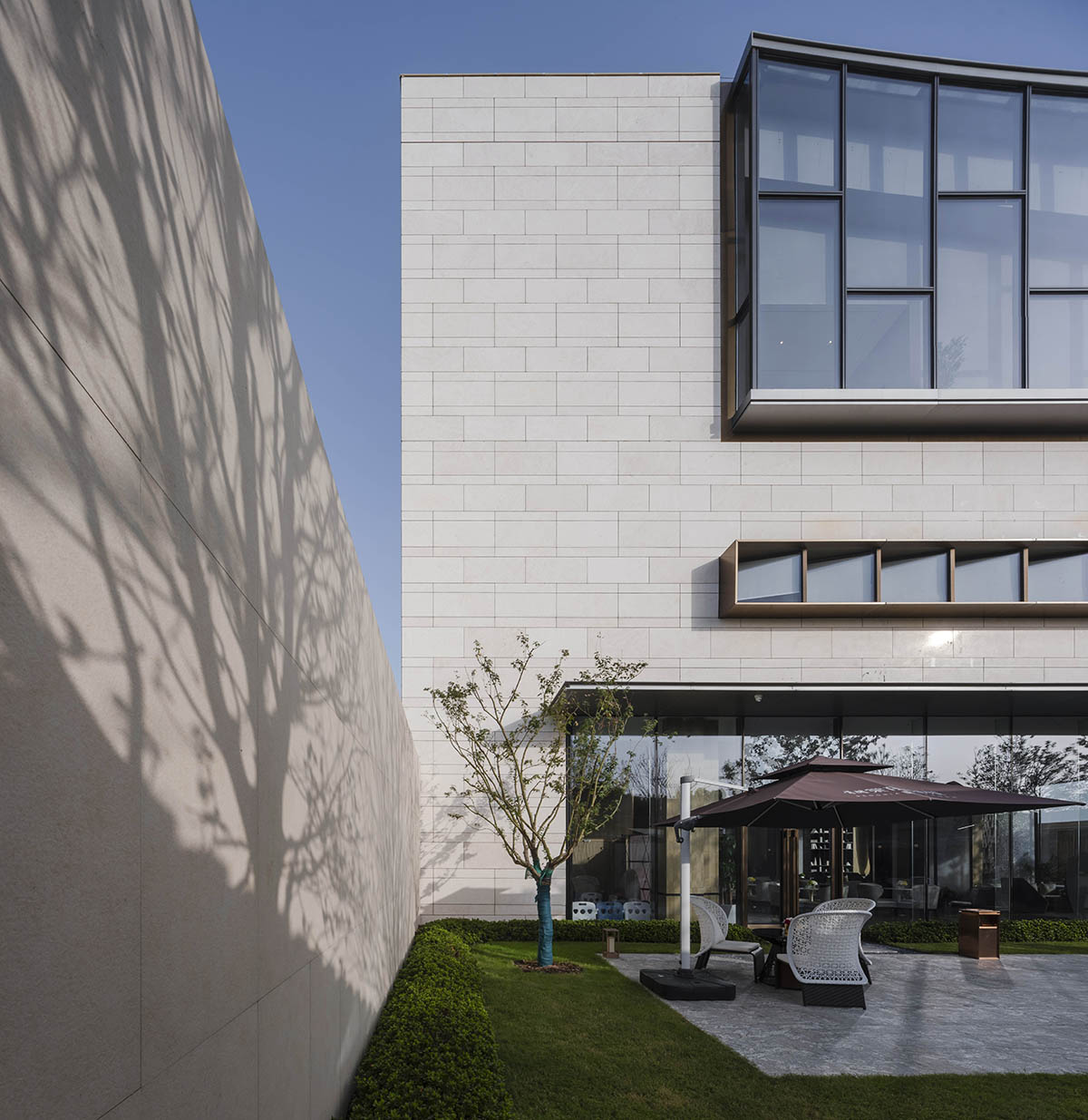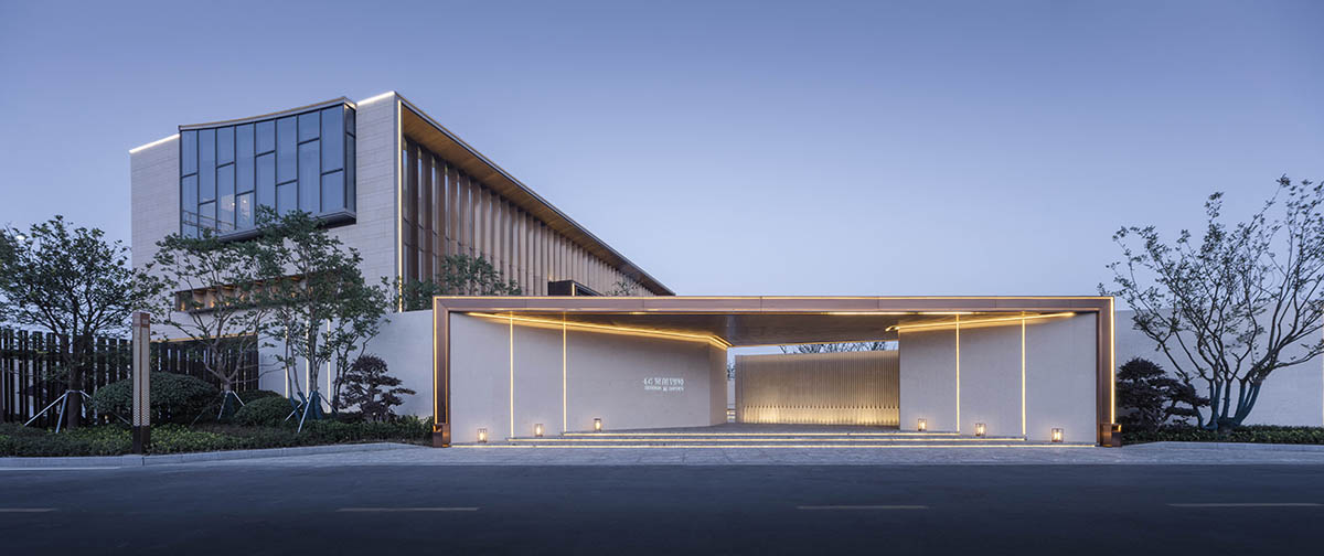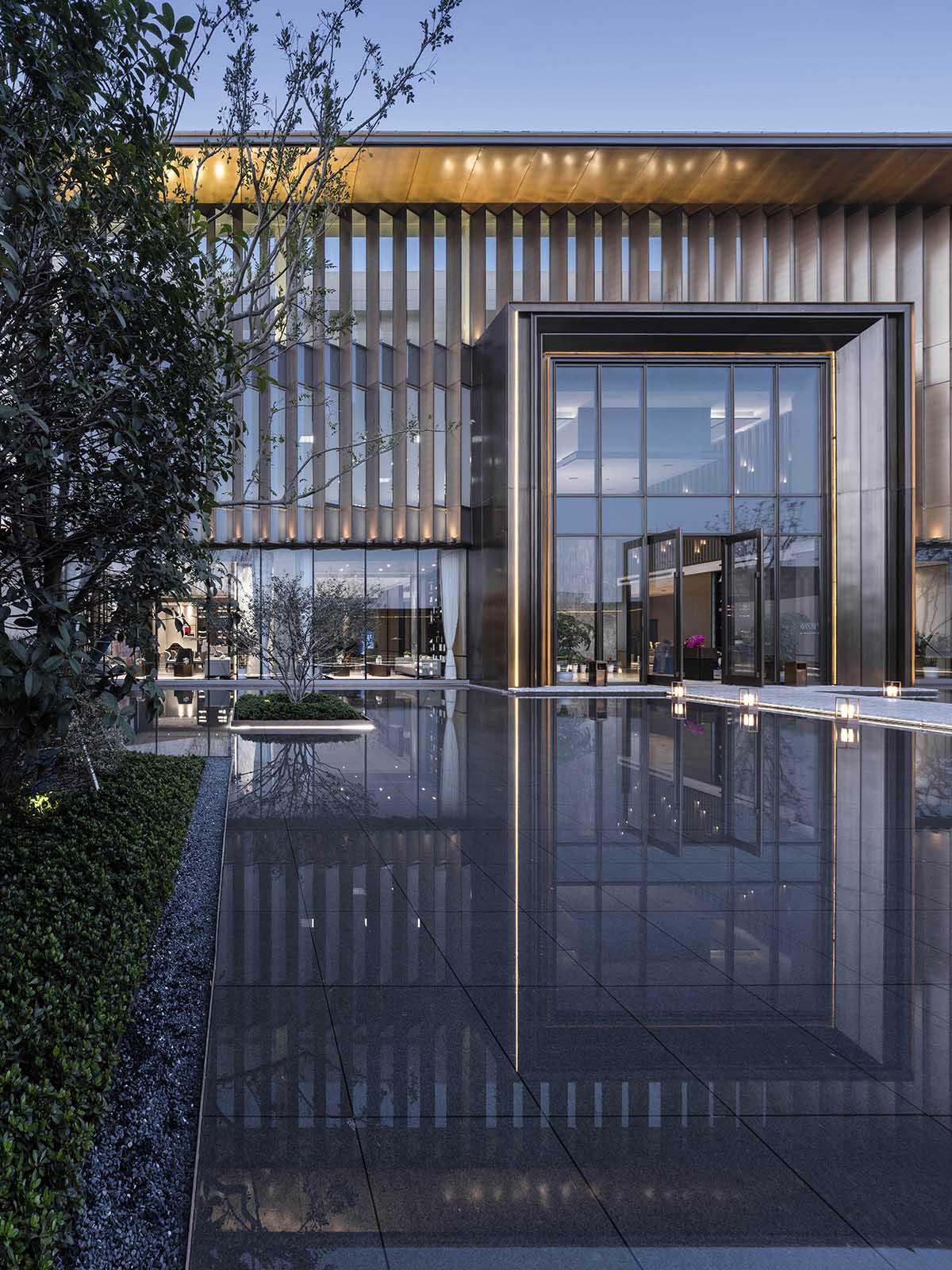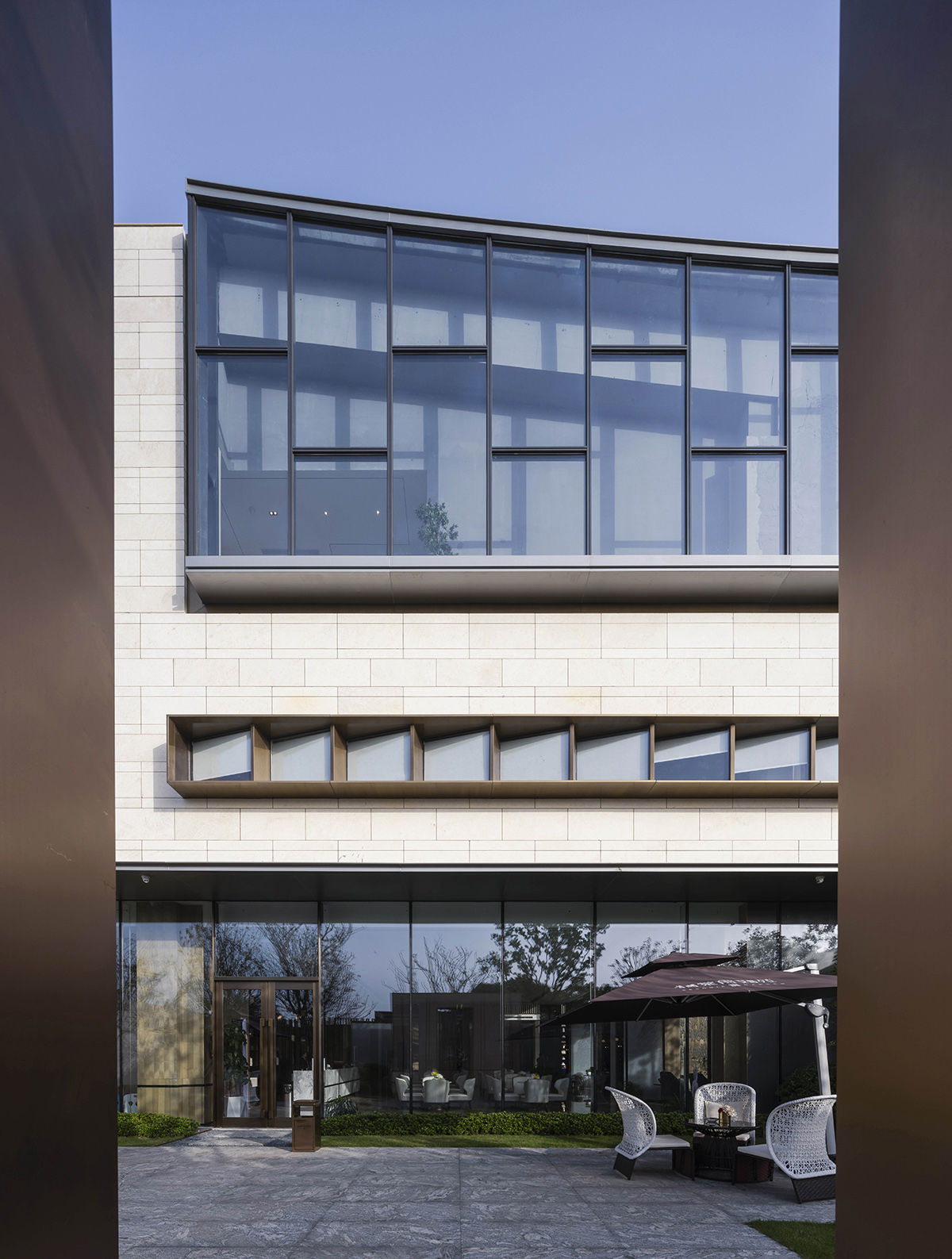 建筑位于苏州科技城片区,距太湖约2公里,作为住宅配套建设的邻里商业中心,其先期建设的独栋商业作为展示中心使用。在棠前如苑邻里中心的设计中,我们期待以现代建筑语言来演绎苏州传统建筑的精神特质,营造一个商业、生活、文化交汇的舞台。