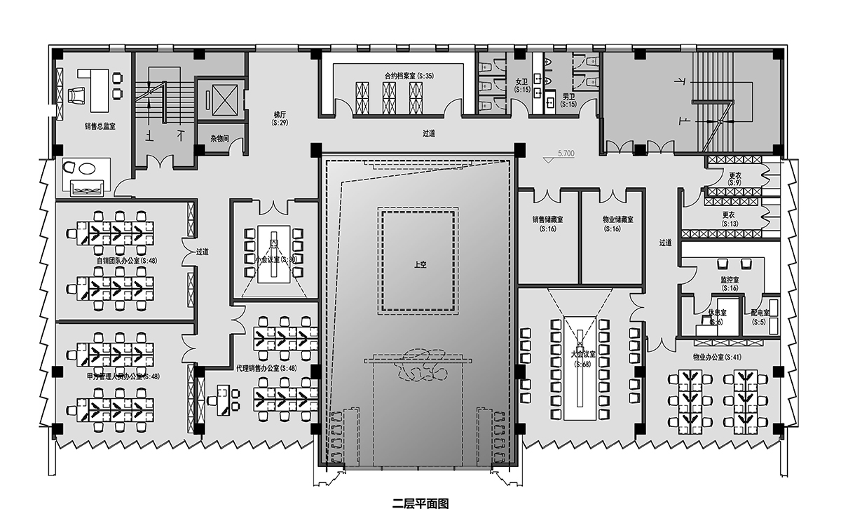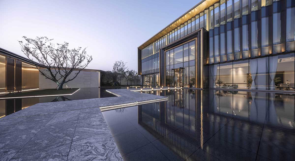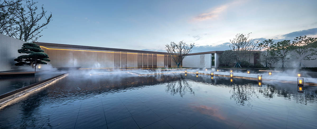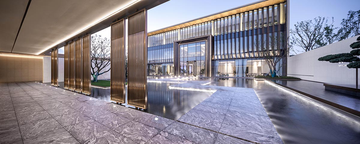 建筑前场空间较为局促,设计借鉴传统苏州园林的造园手法,采用起承转合的路径设置,拉长体验动线,通过层层递进的五重空间放大整个示范区的场景感受。