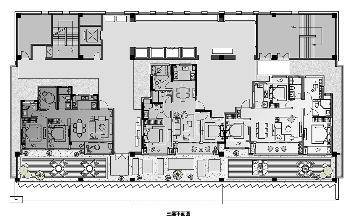 江南传统建筑以粉墙黛瓦,檐口相逐为主要的造型元素,白色墙体表达了建筑“轻净素雅”的特质,人字形起伏的坡屋顶“剪边”勾勒了层次丰富的天际线,“留白”的虚实处理手法体现了简练、克制的审美情趣。
