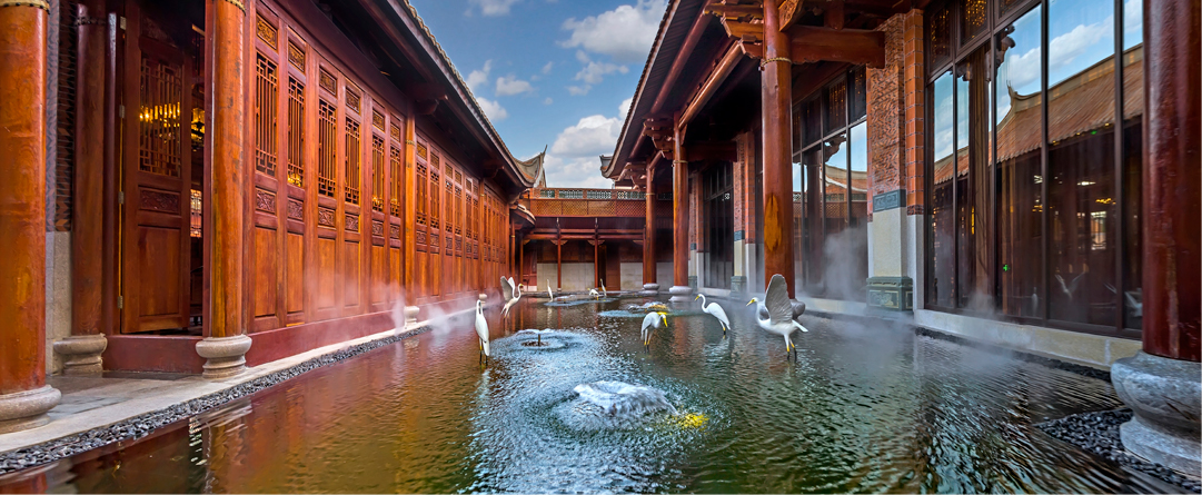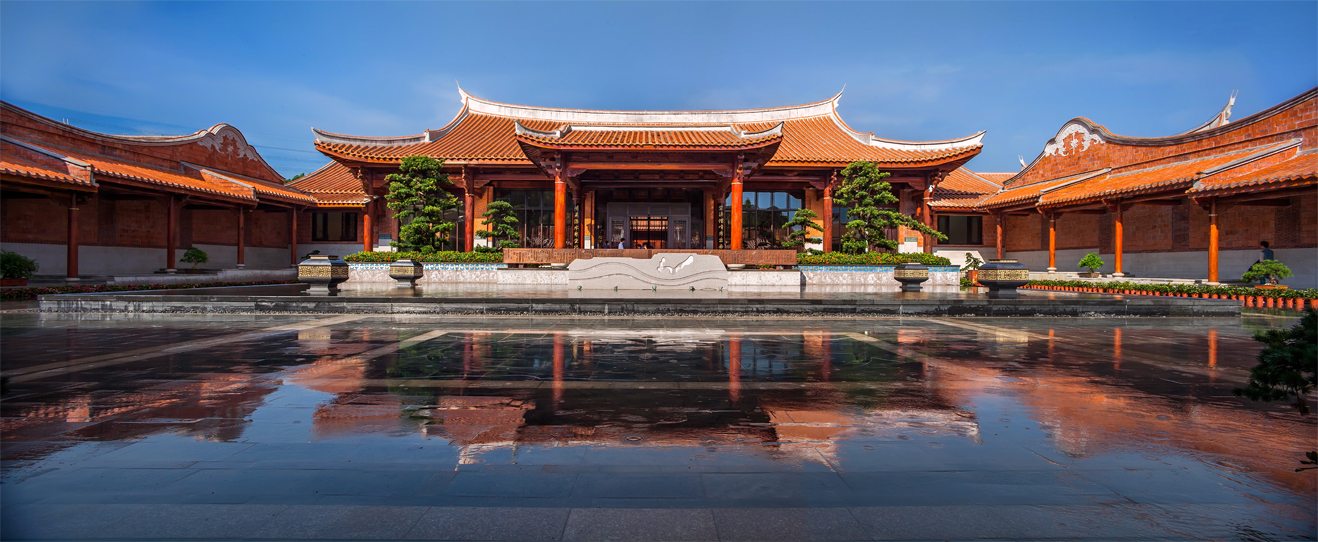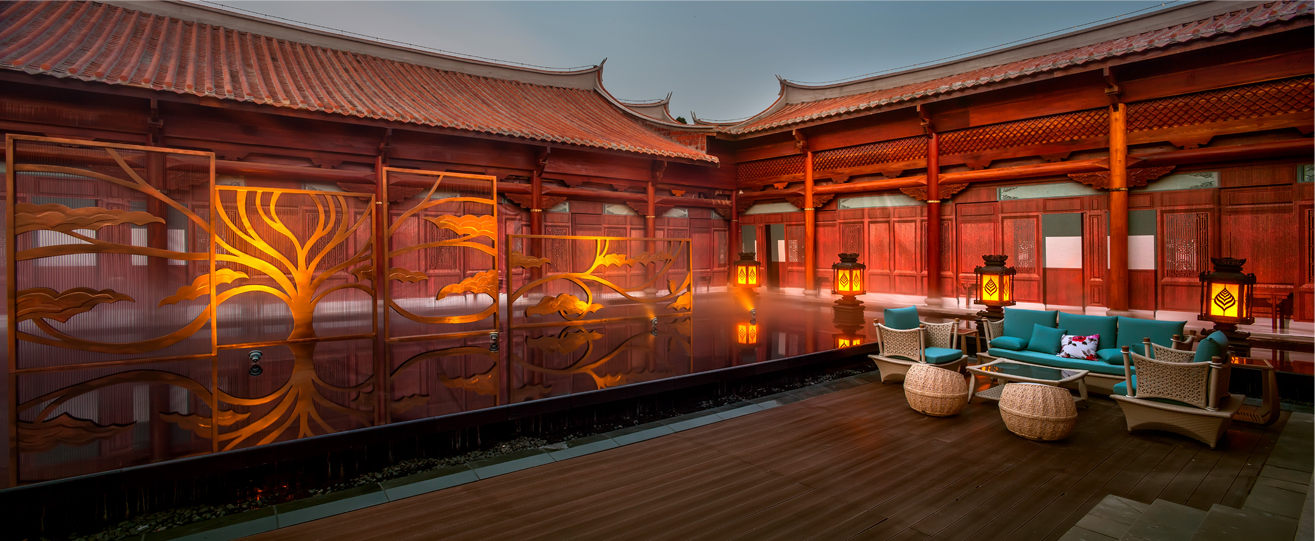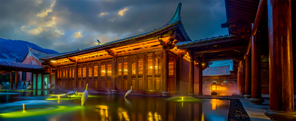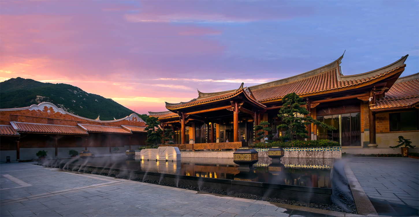 项目位于紫湖水库的西北面,有“紫帽凌霄”之誉,紧邻紫帽山风景区,坐落在晋江市的北侧。酒店的建筑立面参考了泉州当地的官式大厝,充分运用了燕尾脊,红砖墙,青石等传统建筑元素。木材与石材为主要的建筑材料,成功运用其特性,体现了对地方建材的尊重。通过“厝”与“院”的提取和重组,创造出一种具有闽南意味的中式空间。