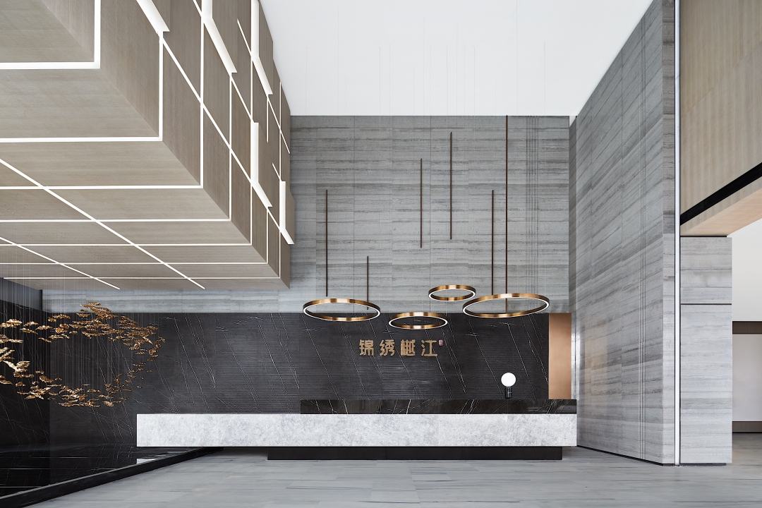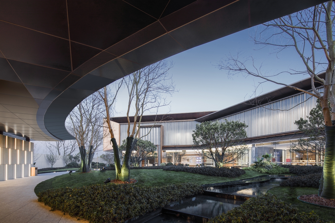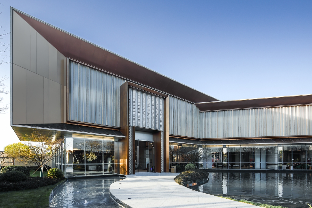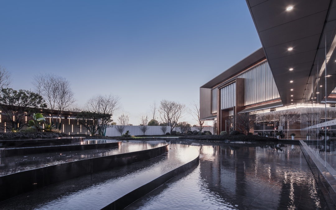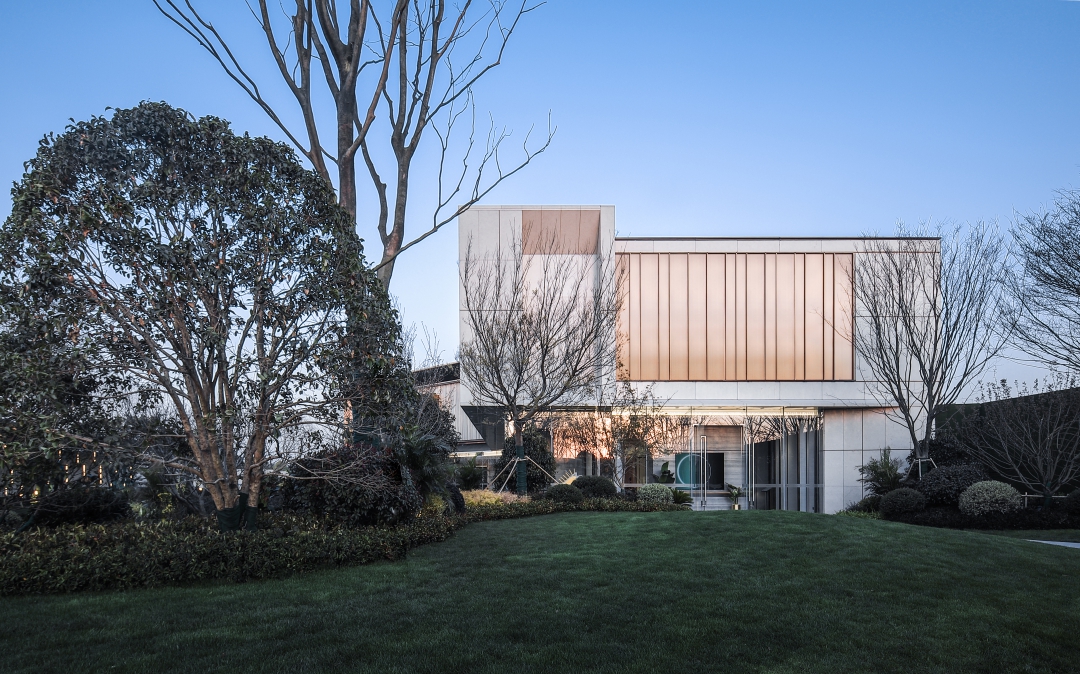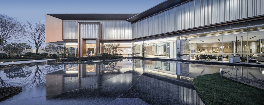 锦绣樾江府生活美学馆位于南京江北自贸区研新路与园特路交汇处,是社区配套商业街的一部分。在设计中将建筑与室外景观相互衬托,在唯美的人工空间中,引入一丝自然的环境美,营造一个有温度、会交流的生活美学馆。