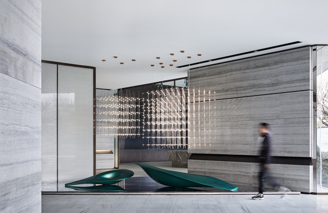 内部空间陈设艺术营造室内空间气氛、提升空间品质、表现主题意境以及空间的文化气息,创造室内空间格调,增加室内空间艺术情怀。以别具一格的几何结构形式延伸到室内空间,雕塑的造型及内部丰富的空间和光影,给游览者视觉享受和独特的空间体验。