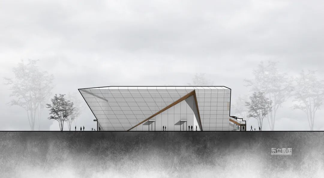 在二楼两个体块间预留预留露台空间,来访者可以到达建筑的屋顶露台,从而欣赏万丰湖湿地公园的全景风貌。并于露台预留架设天文望远镜的空间,游客可于此仰望满天繁星。