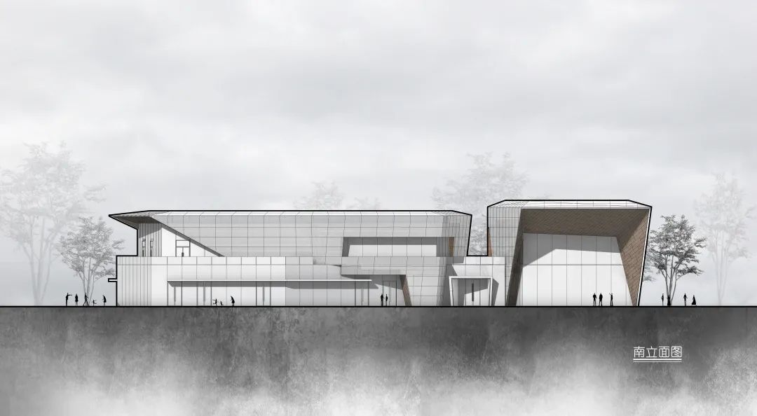 这座标志性的建筑位于湖南省株洲市天元区,南面可远眺万丰湖湿地公园。建筑形态呈现出两块几何变形的空间序列,并于内部空间和外部景观间建立一个精心编排的体验序列。