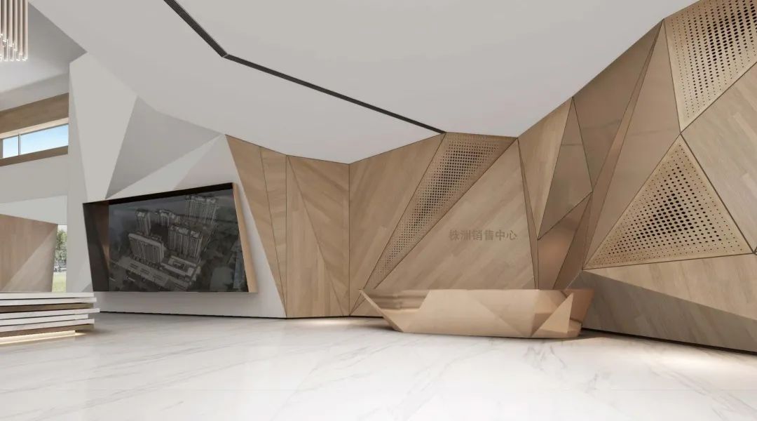 几何学是设计师最基本的技能和设计手段,几何形体的使用与组合,反应了各个时代的建筑艺术特征。现代建筑空间的各类问题,也经常在几何学基础上加以解决。在空间设计的趋势下,最大限度地约减材料变化,纯化表面,去除大量非本质的因素,将主题与空间交织在一起。通过折线、转角与光线的变化,将作品本身多层次的复杂景色呈现出来,是本案所带来的启发。