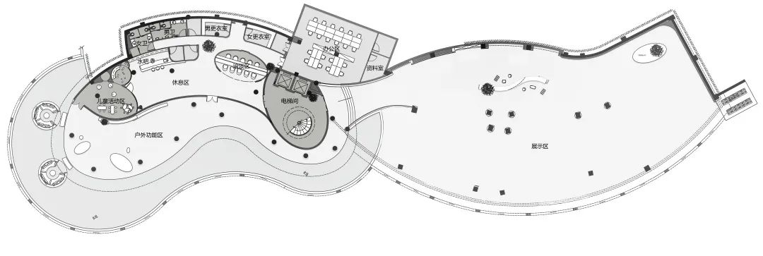 借山·踏云·造水,研学营将自然性与艺术感相结合,通过对云的简化精炼提取出母题,作为建筑的概念曲线。