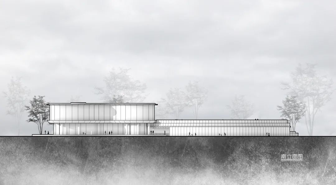 项目设计之初,如何能在山河之间形成一所既能充分享有景观资源,又不会被周边鳞次栉比的建筑淹没的“小”艺术馆是思考的重点。未来在旁边的山头还会有坂茂设计的湿地博物馆,怎么让这两所关系紧密的建筑完美结合也是设计立意的另一维度。