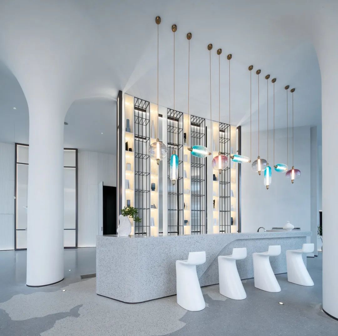一片萦绕在山间的云,山中有云,云间有山。设计寻找一种新的语言,将东方的意境以更加未来的方式呈现,创造出东方文化与现代主义相结合的全新体验。