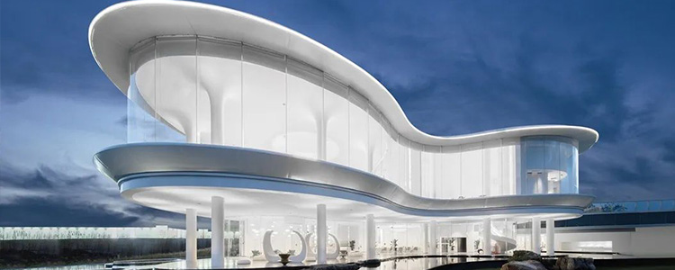 艺术馆除了通透的玻璃,主要选取了轻质的铝板,减少造型带来的建筑负荷,形成明快的立面效果,又能保证建筑外立面持久长新。这种耐腐蚀性好的材料运用对于贵阳地区酸雨多的自然条件又不失是一种更好的选择,建筑的可持续性更强。