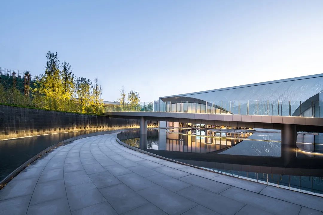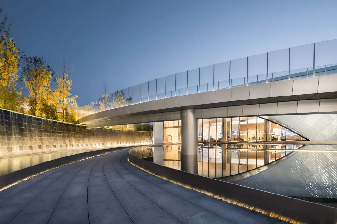 内外一体:建筑犹如一个被交错廊桥包裹着的玻璃展品,形成城市道路边独特的视觉标识,展馆内的活动也成为展示的一部分,吸引人们走进场地,感受设计的叙事,浏览本身也成为展览发生的一部分。