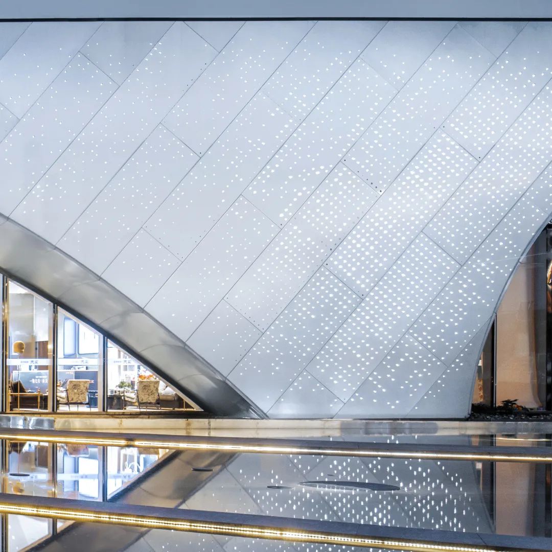 材料的构造,细节的把控依然是我们设计追求的品质,铝板表面的穿孔细心考究,结合灯光设计营造出气泡缓缓上升的感觉,轻盈动感。