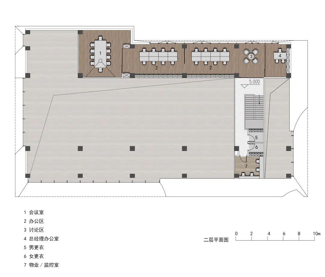 多空隙空间:挑高的回廊空间,横向的尺度将空间的线性感完美的体现。半透的玻璃界定着空间,透漏着光影与空间,同时作为载体描绘着线性构成的光的语言。充分利用灰空间实现建筑与景观的柔和过渡,使两者成为自然而有机的整体。